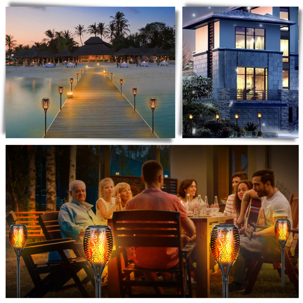 The LED Solar Torch Lights are economical and eco-friendy so definitely convenient for different kinds of outdoor events like a BBQ, weddings, parties, Christmas Day, Halloween, Valentine´s Day, even picnics and camping. They will look great as decoration in your garden, patio, driveway, pathways and in flowerpots. In other words, you can use them anywhere and under any weather conditions for any season and event.